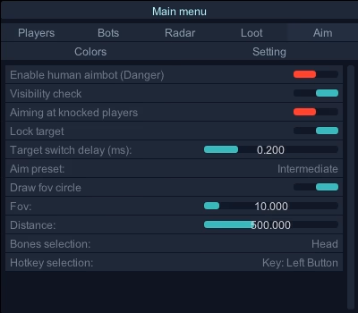 - Distance — Aimbot working range.