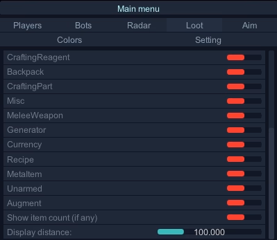 - Distance — Aimbot working range.